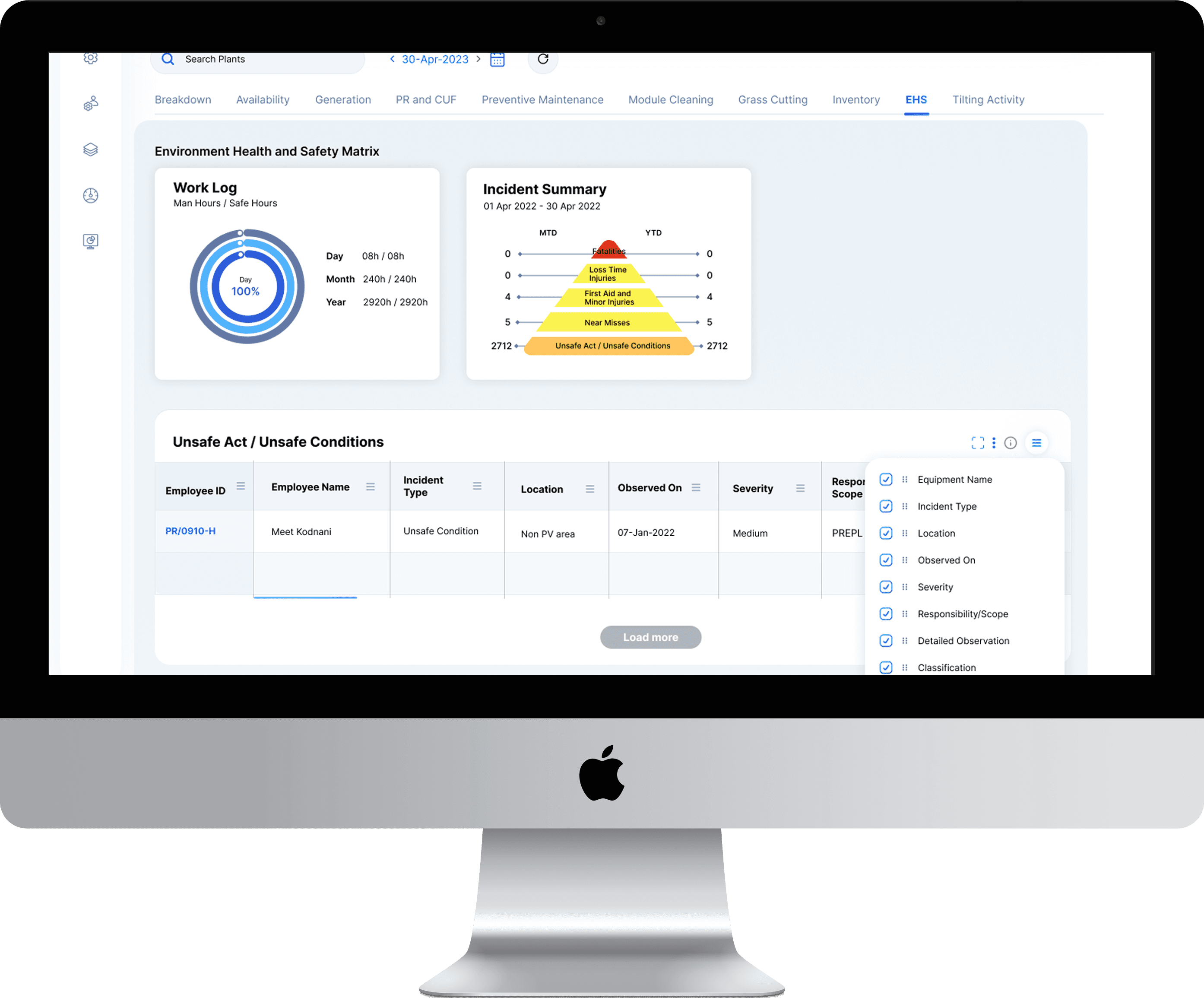 The Prescinto reporting platform was a greenfield design challenge that required integrating multiple complex operational and safety workflows—from performance monitoring (Breakdown, Maintenance) to compliance tracking (EHS)—into a single, cohesive application.